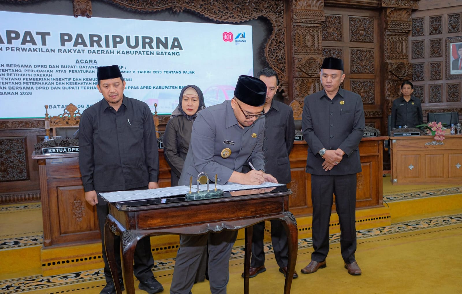 Demikian disampaikan Bupati Batang M Faiz Kurniawan dalam Rapat Paripurna DPRD Batang terkait Persetujuan Bersama DPRD dan Bupati terhadap tiga Raperda serta terhadap KUA-PPAS APBD Batang Tahun 2026, Rabu (6/8).