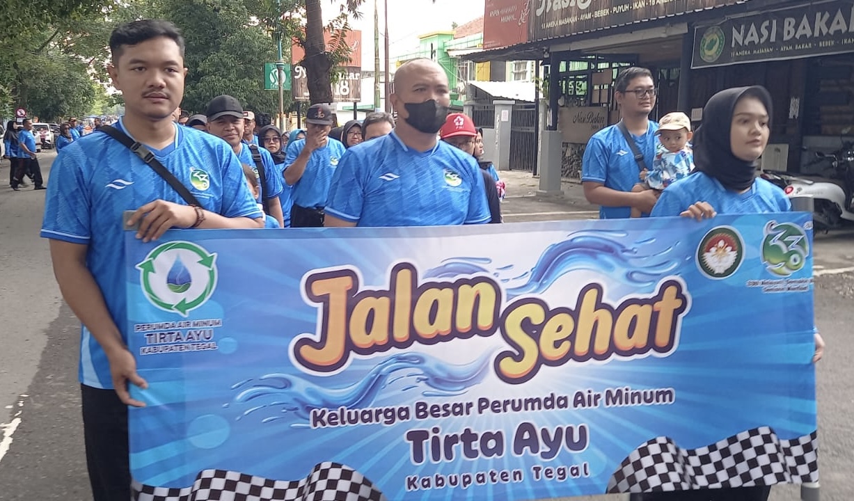SLAWI, smpantura – Menyambut Ulang Tahun ke-33, Perusahaan Umum Daerah (Perumda) Air Minum Tirta Ayu Kabupaten Tegal menyelenggarakan jalan sehat, Minggu (20/4/2025).