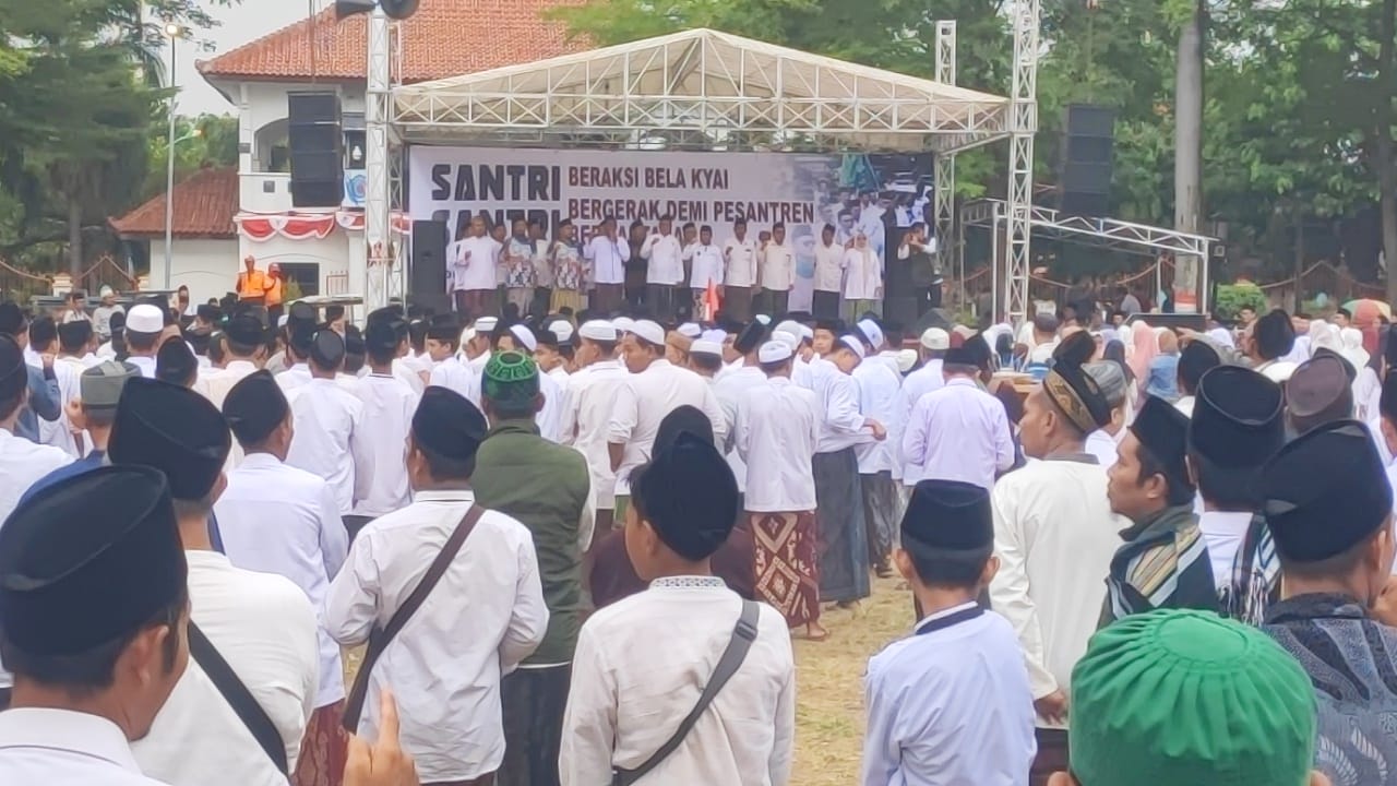 BREBES, smpantura – Ratusan santri alumni pondok pesantren dari berbagai penjuru Kabupaten Brebes, menggelar aksi damai, di Alun-alun Kota Brebes, Jumat 17 Oktober 2025. Dalam aksinya ini, mereka yang tergabung dalam Forum Peduli Pesantren Kabupaten Brebesini, menyerukan bela kyai dan menjaga marwah persantren.