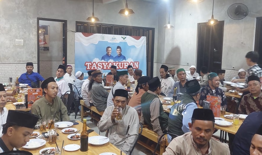 SLAWI, smpantura – Ratusan santri yang tergabung dalam Santri Gayeng Nusantara (SGN) Kabupaten Tegal menggelar tasyakuran atas kemenangan pasangan Ahmad Luthfi-Taj Yasin dalam Pilkada Jateng 2024 di warung sate di Jalan Raya Tegal-Slawi Desa Kalimati, Kecamatan Adiwerna, Kabupaten Tegal, Sabtu malam (7/12/2024). Tasyakuran SGN dilakukan serentak di 35 kabupaten/kota di Jawa Tengah.