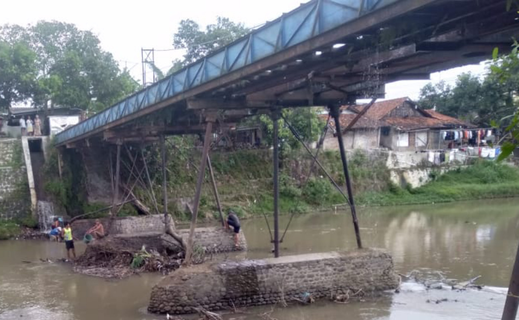 Bangunan yang sudah berusia puluhan tahun itu rawan ambruk karena mulai rapuh, terutama pada bagian pondasi dan tiang penyangga yang rusak akibat tertimbun sampah hingga batang pohon terbawa arus banjir.