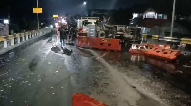 Rem Blong, Truk Hajar Tiga Mobil di Flyover Kretek