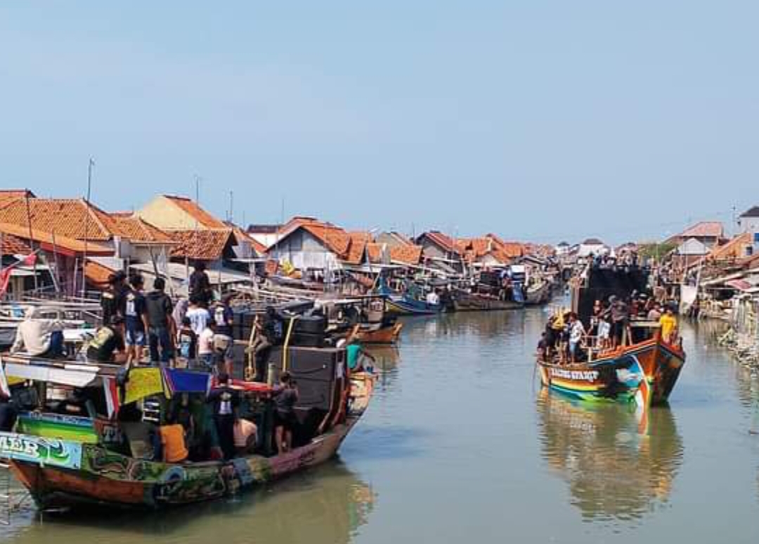 BREBES, smpantura – Ribuan nelayan dari berbagai desa di pesisir Kecamatan Losari, Kabupaten Brebes, Jawa Tengah, tumpah ruwah dalam sedekah laut. Tradisi masyarakat pesisir untuk mengungkapkan rasa syukur ini, digelar di Desa Prapag Kidul, Kecamatan Losari, Sabtu (3/8/2024). Ribuan nelayan melakukan larung sesaji dalam proses sedekah laut tersebut.