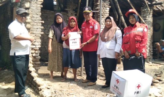 Bantuan berupa uang tunai sebesar Rp 700.000 dan paket sembako diserahkan langsung oleh Ketua PMI Kabupaten Tegal Iman Sisworo kepada Waridah, didampingi perangkat Desa Dawuhan.