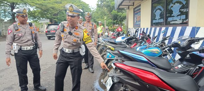 BREBES, smpantura – Dalam kurun waktu hanya satu jam, sedikitnya 35 unit sepeda motor yang memakai knalpot tidak standar, atau knalpot brong, berhasil terjaring razia jajaran Satlantas Polres Brebes, Jumat (5/1/2024) pagi. Razia terhadap knalpot brong ini terus digencarkan polisi menjelang digelarnya kampanye terbuka Pemilu 2024.