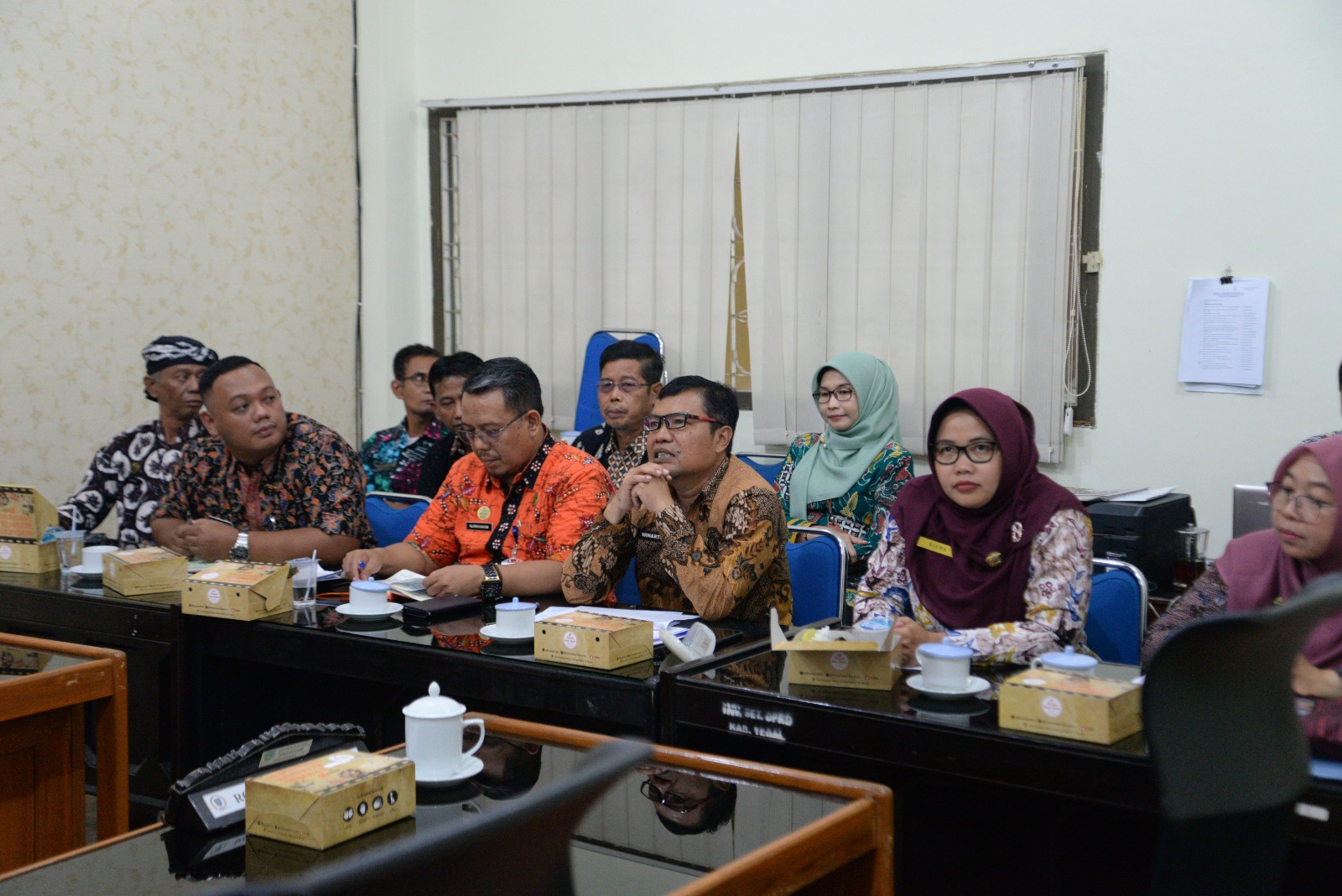 RAPAT KERJA : Plt Kepala Dikbud Kabupaten Tegal, Winarto beserta pejabat lainnya rapat kerja dengan Komisi IV DPRD Kabupaten Tegal, baru-baru ini.