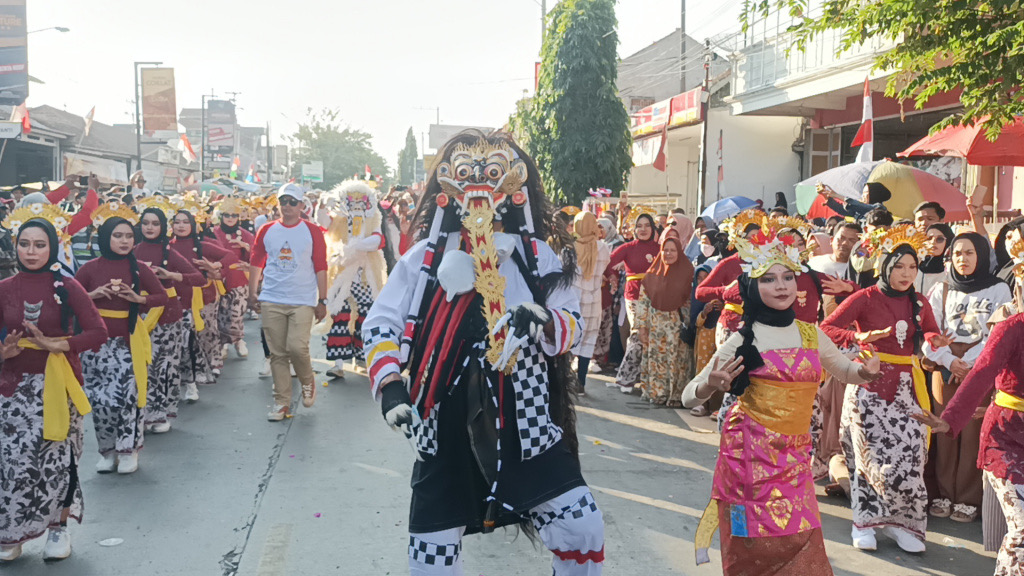 BREBES, smpantura – Karnaval peringatan HUT ke-79 Kemerdekaan Republik Indonesia di Kecamatan Bumiayu, Brebes, berlangsung meriah dan semarak, Sabtu (24/8). Ribuan warga memadati sepanjang rute karnaval yang dimulai dari Lapangan Asri dan berakhir di Lapangan Muncang.