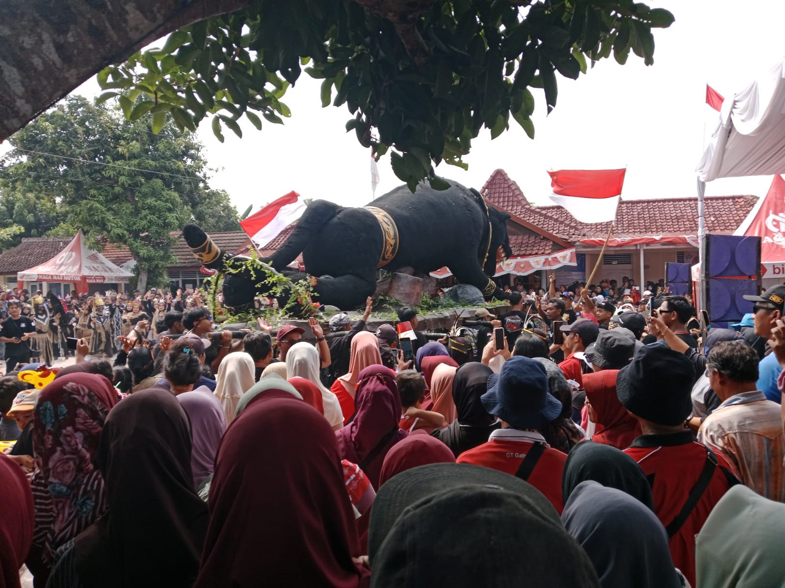 Semarak Karnaval Di Desa Pangkah, Warga Tampilkan Patung Raksasa Macan Kumbang Hingga Atraksi Tari Jaranan
