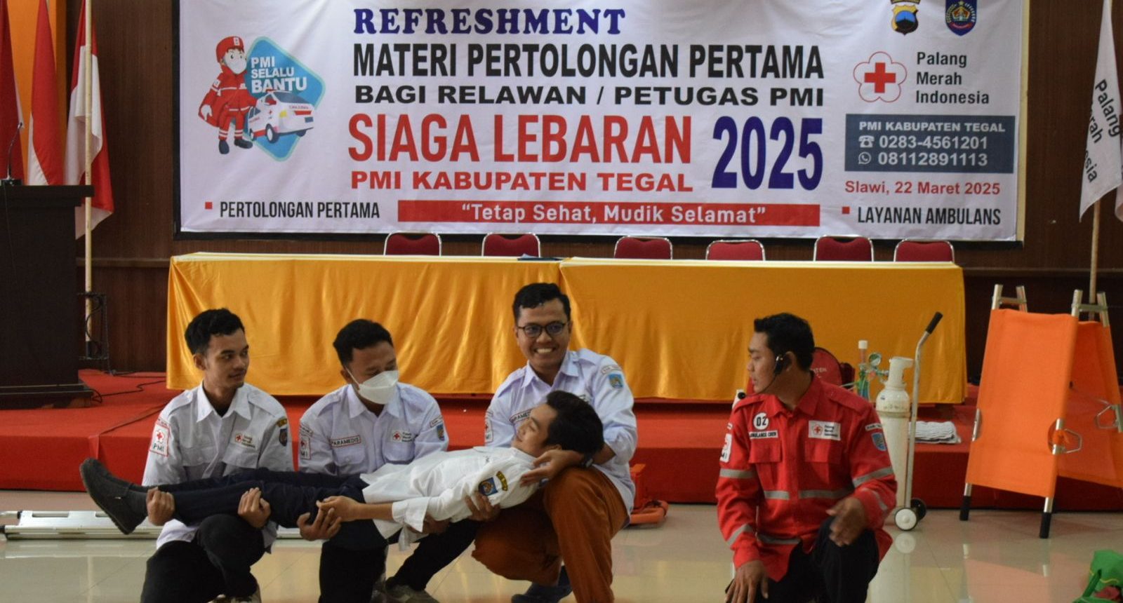 Relawan PMI yang diterjunkan telah dibekali dengan keterampilan pertolongan pertama PMI Kabupaten Tegal juga mengadakan refresh materi pertolongan pertama dilaksanakan Sabtu (22/3) di Gedung Pelayanan PMI Kabupaten Tegal Jalan Gajah Mada Slawi.
