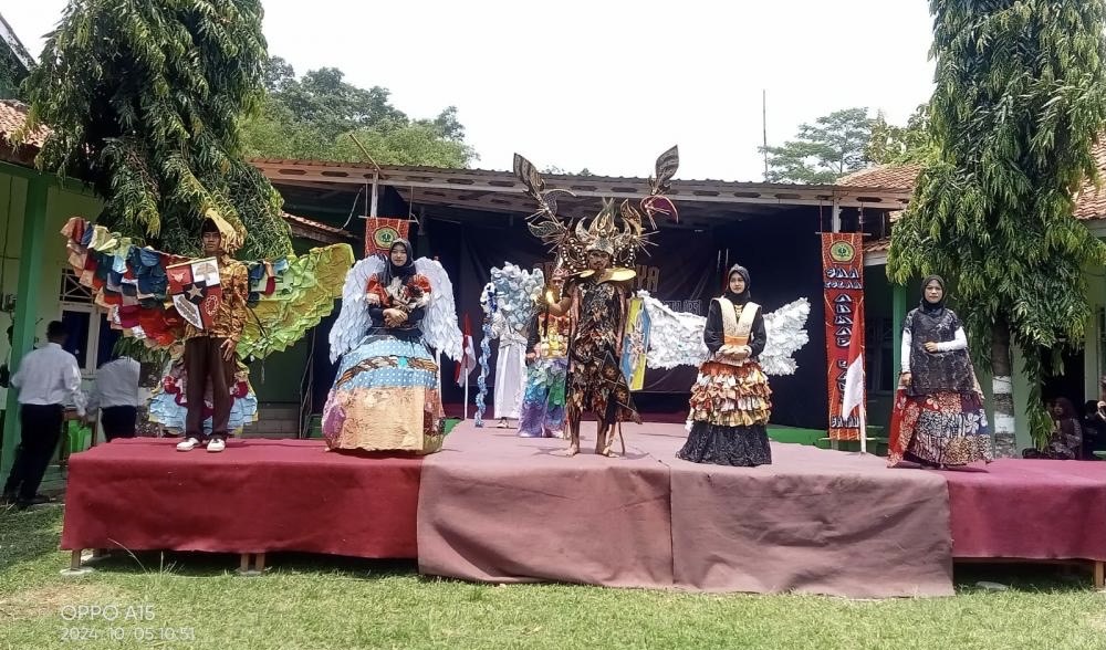 Siswa kelas X misalnya, menampilkan berbagai inovasi beragam, mulai dari fashion show dengan kostum berbahan dasar plastik dan kain perca tidak terpakai.