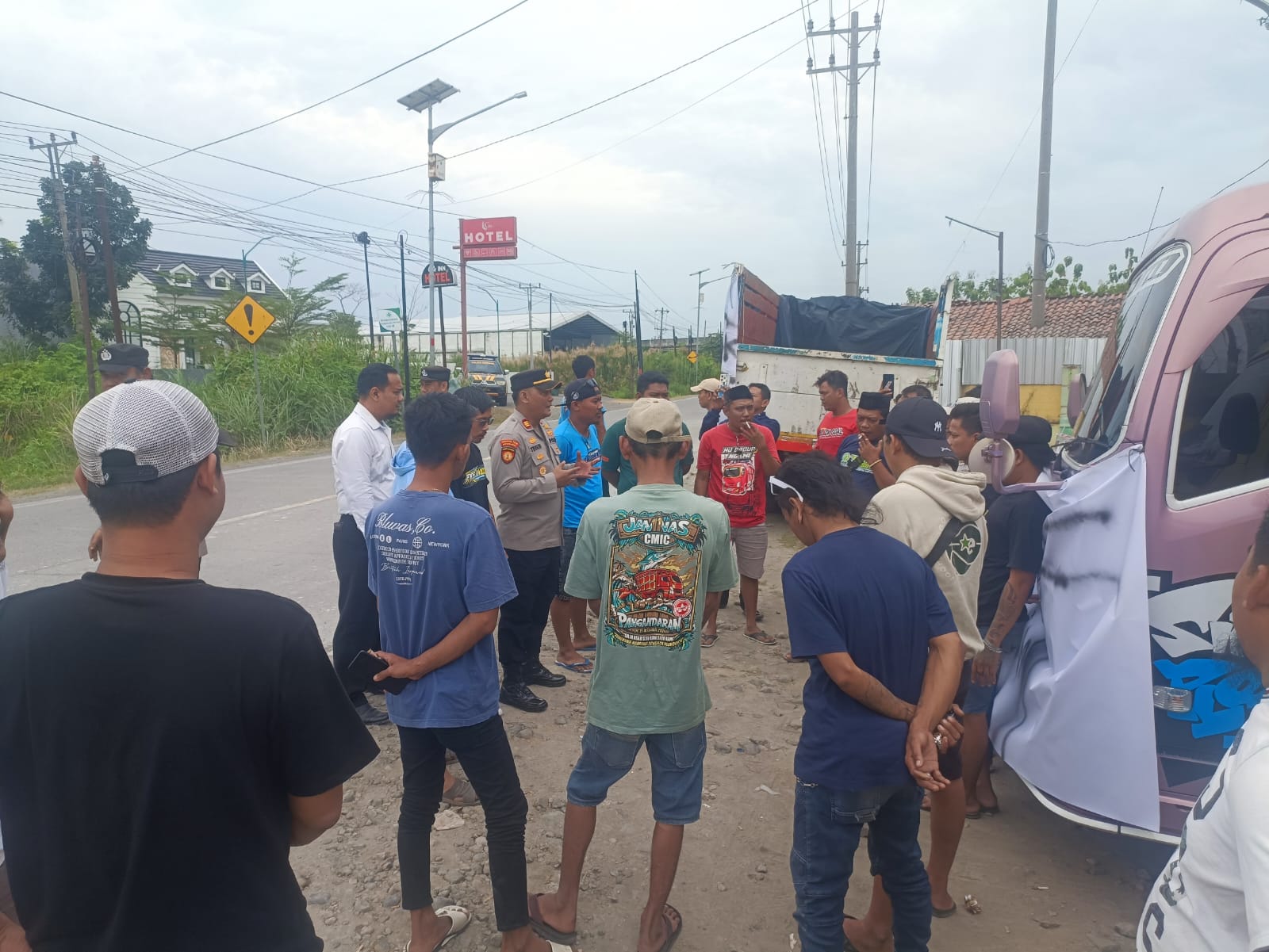 Aksi para sopir truk ini berakhir, usai melakukan orasi dan penyekatan. (*)