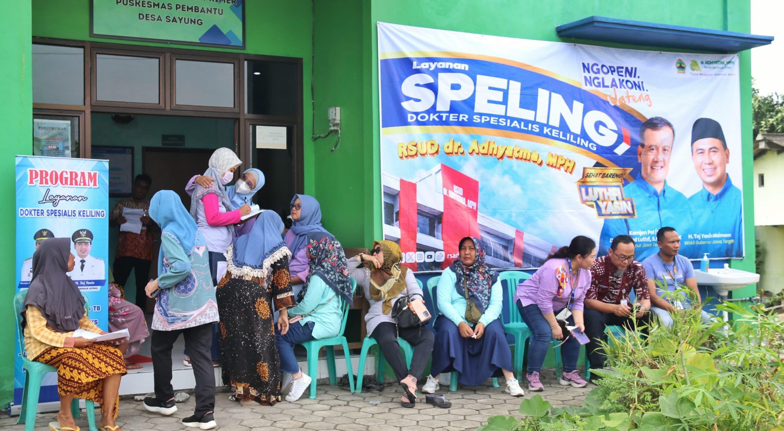 Menariknya lagi, warga tidak perlu jauh-jauh datang ke rumah sakit, Program Speling (Dokter Spesialis Keliling) ini mendekatkan diri ke masyarakat. Hari ini Speling menyasar warga Desa Sayung. Pemeriksaan dilakukan di Balai Desa Sayung yang kebetulan berdampingan dengan Puskesmas setempat.