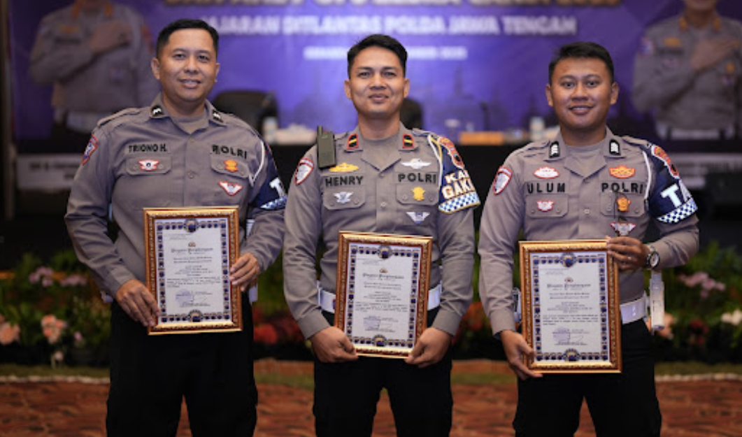 Piagam penghargaan di serahkan langsung oleh Dirlantas Polda Jawa Tengah, Kombes Pol. M. Pratama Adhyasastra dalam kegiatan Anev Semester II T.A. 2025 dan Anev Operasi Zebra Candi 2025 yang berlangsung di Ballroom Quest Hotel Simpang Lima Semarang, Kamis (4/12/2025).