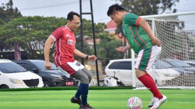 SLAWI, smpantura – Kepiawaian Bupati Tegal, H Ischak Maulana Rohman dalam permainan minisoccer semakin teruji….