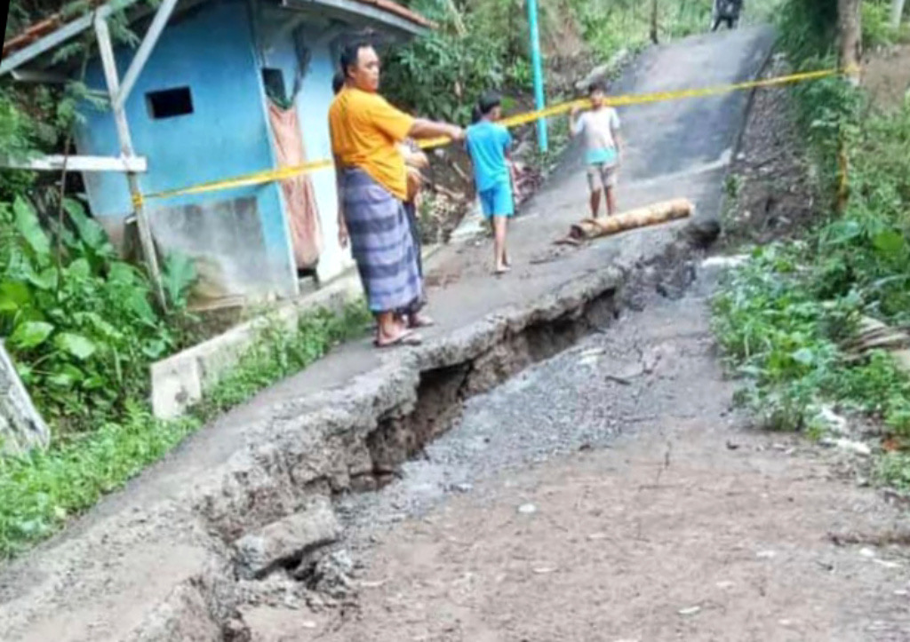BREBES, smpantura – Hujan deras yang mengguyur Kecamatan Bantarkawung, Brebes, Minggu (24/11), memicu pergerakan tanah di Desa Waru. Peristiwa ini menyebabkan akses jalan menuju Dukuh Waru sepanjang 25 meter terputus, sehingga kendaraan roda empat tidak dapat melintas.