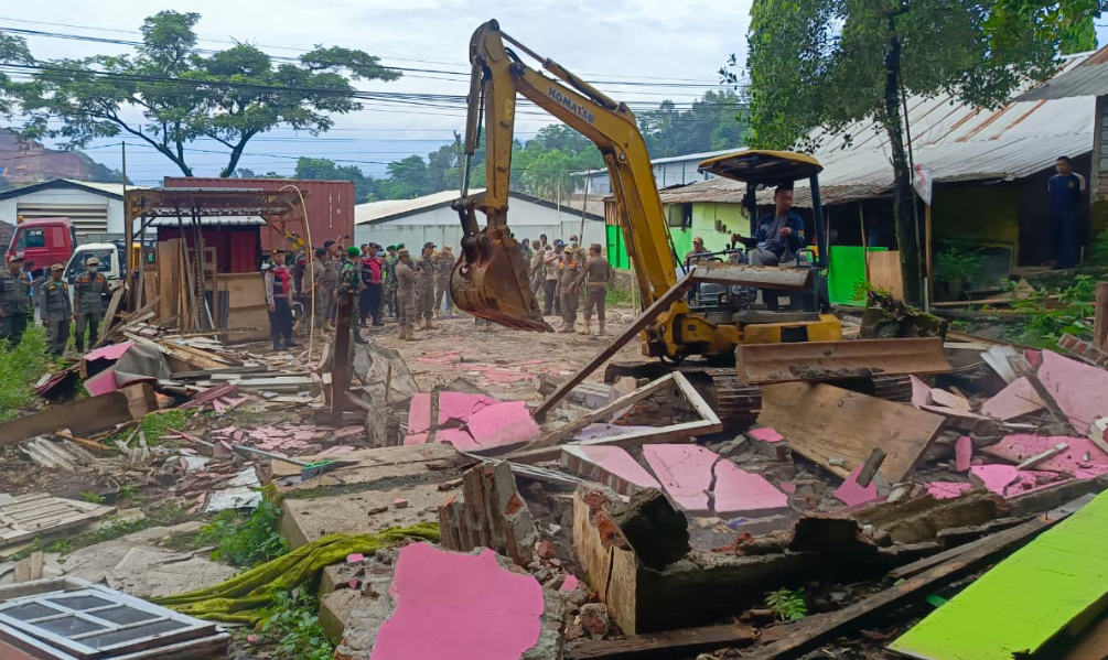 Tanpa Perlawanan, Eskavator Ratakan Puluhan Warung Remang-Remang