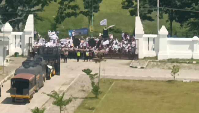 BREBES, smpantura – Ratusan Pegawai Tidak Tetap (PTT), yang tergabung dalam Forum Honorer Pegawai Tidak Tetap (FHPTT) Tenaga Pendidik Kabupaten Brebes, berdemonstrasi di depan Kantor Pemerintahan Terpadu (KPT) Kabupaten Brebes, Senin (22/4/2024) pagi. Mereka berunjukrasa menuntut untuk diangkat sebagai Pegawai Pemerintah dengan Perjanjian Kerja (P3K).