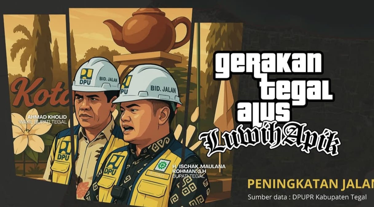 SLAWI, smpantura – Bupati Tegal dan Wakil Bupati Tegal mulai merealisasikan janji kampanye dengan program Gerakan Tegal Alus Lewih Apik. Dalam gerakan perbaikan infrastruktur itu, Bupati Ischak mengalokasikan perbaikan jalan untuk 53 ruas, 5 pembangunan jembatan dan 3 perbaikan jembatan. Termasuk, perbaikan Jalan Lingkar Kota Slawi (Jalingkos) yang dianggarkan Rp 5,36 miliar (M).
