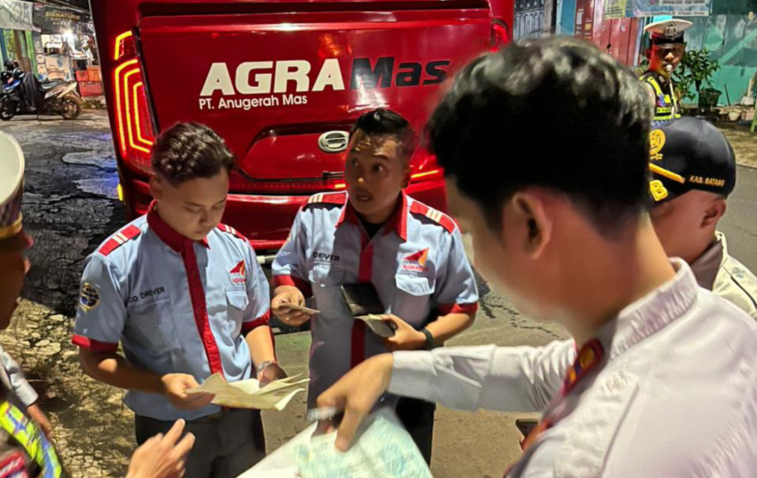 BATANG, smpantura – Aparat gabungan kembali melakukan razia terhadap bus Antar Kota Antar Provinsi (AKAP) yang tetap nekat menaikan dan menurunkan penumpang di luar trayek resmi di wilayah Kecamatan Bandar dan Blado, Jum’at malam (17/10). Razia ini melibatkan aparat dari Dinas Perhubungan (Dishub) Batang, Dishub Provinsi Jateng, Kementerian Perhubungan dan Satlantas Polres Batang.