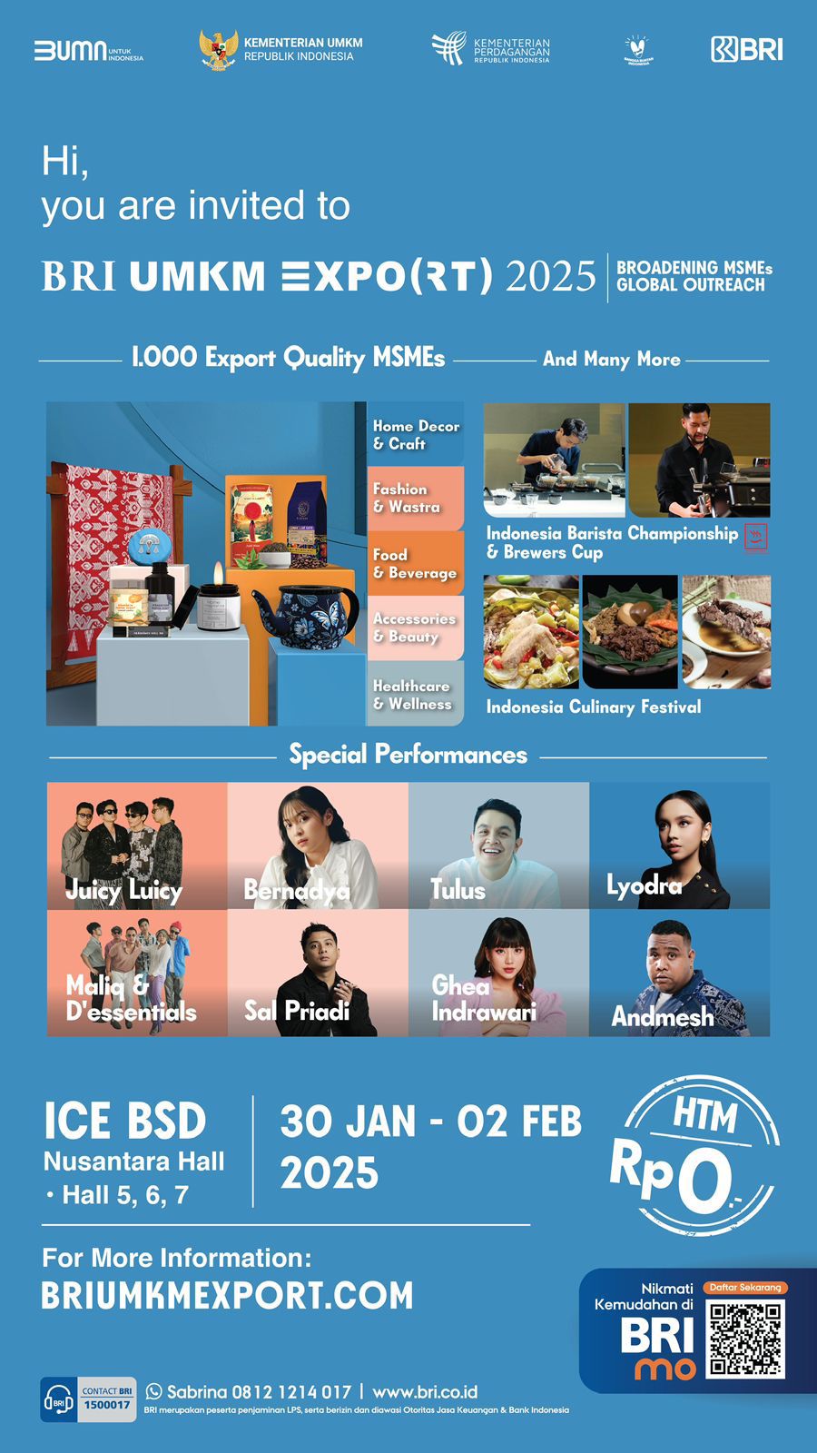 Pada acara itu, BRI turut menyelenggarakan BRI Microfinance Outlook 2025, seminar internasional yang membahas peran UMKM dalam mendorong pertumbuhan ekonomi yang inklusif dan berkelanjutan. Forum ini akan fokus membahas strategi pemberdayaan masyarakat sebagai motor penggerak ekonomi berbasis rakyat. **