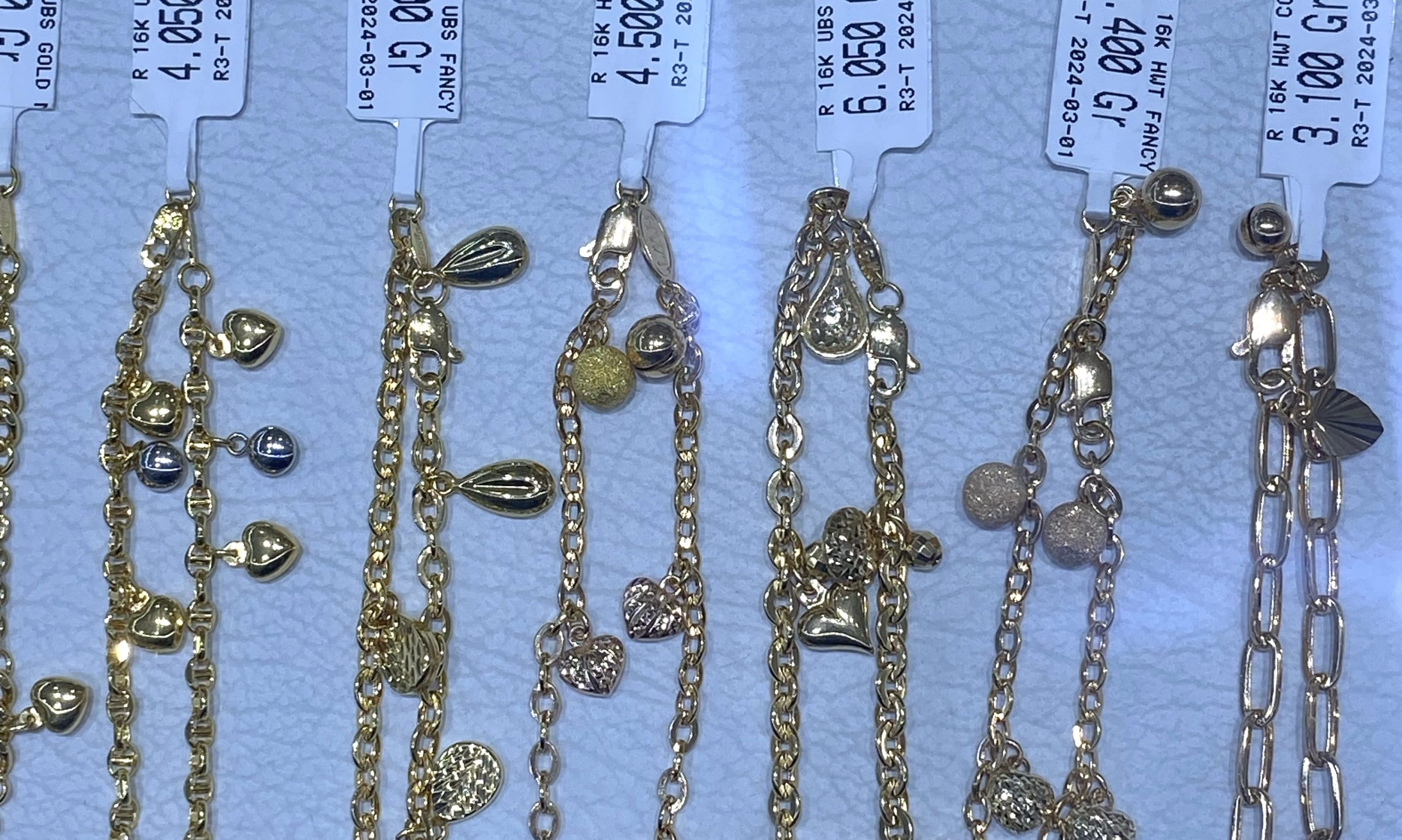 Harga perhiasan emas bervariasi sesuai dengan kadarnya.