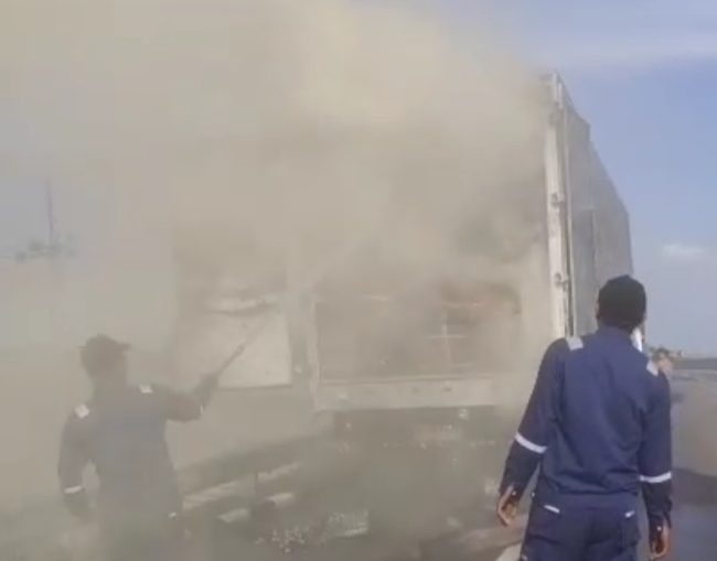 Insiden yang menimpa truk box B-9129-PEV ini, bermula saat truk berhenti dipinggir jalan tol, karena melihat kobaran api berasal dari dalam box. Asap hitam juga terlihat keluar dari dalam box.