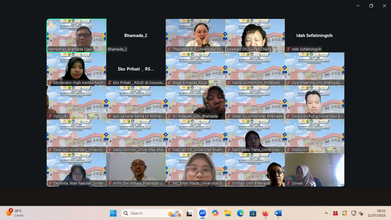 SLAWI, smpantura – Dalam rangka memperingati Dies Natalis ke-4, Universitas Bhamada Slawi menyelenggarakan International Seminar 2025 secara daring melalui platform Zoom pada Senin (21/7/2025). Seminar ini mengusung tema “Empowering Health Through Digital Transformation”, dengan tujuan membahas berbagai tantangan dan peluang yang muncul dalam integrasi teknologi digital ke dalam dunia kesehatan dan pendidikan.