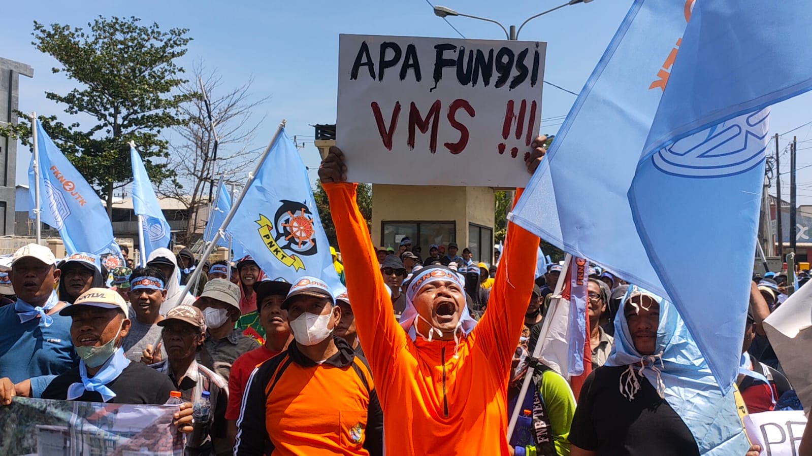 “Apa fungsi VMS. Kami membeli dan memasang secara mandiri. Belum ada efek positif dari alat ini, yang ada justru kami semakin dirugikan,” kata Tegar, salah satu koordinator aksi.