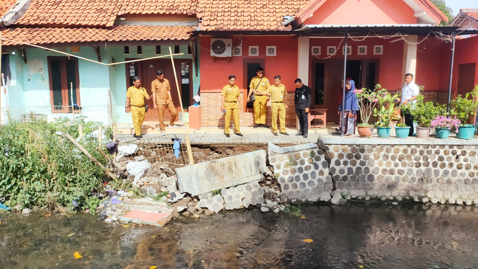 TEGAL, smpantura – Jebolnya tanggul Sungai Kaligung di Jalan Kaloran, Kelurahan Mangkukusuman, Kecamatan Tegal Timur, pada Sabtu 27 September 2025, memperparah kerusakan sebelumnya dan memicu ancaman longsor yang mengintai rumah-rumah warga di bantaran sungai.