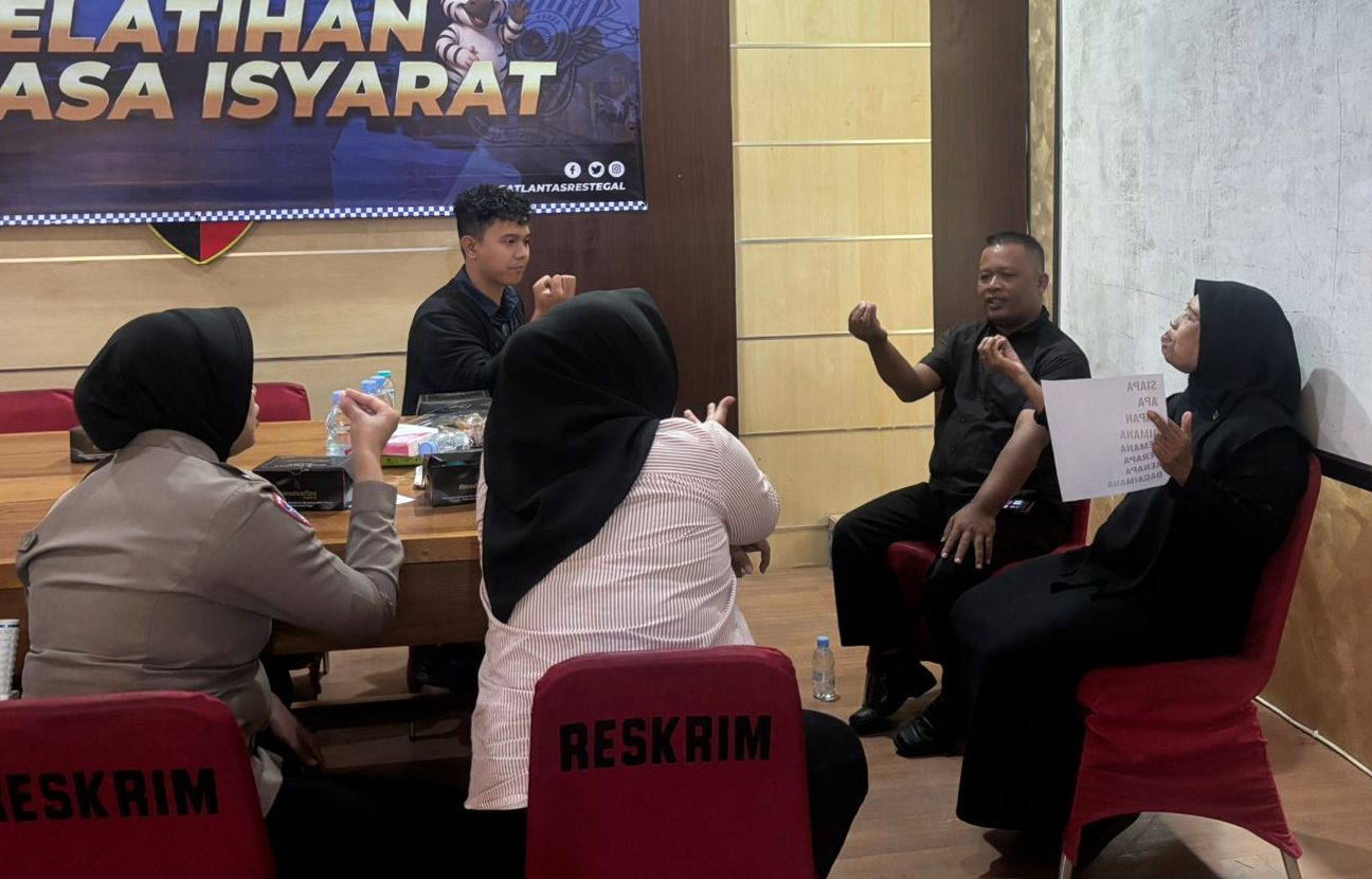 “Pelatihan bahasa isyarat ini, sebagai langkah nyata kepolisian dalam memberikan pelayanan terbaik, khususnya bagi masyarakat yang memiliki kebutuhan komunikasi berbeda,” terang Kapolres Tegal AKBP Bayu Prasatyo melalui Kasat Lantas Polres Tegal AKP Bharatungga Dharuning Pawuri.