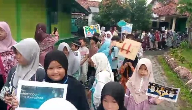 Sambil berjalan kaki mereka membawa berbagai poster berisi ajakan menyambut Ramadan dan melaksanakan puasa dan ibadah lain di bulan suci Ramadhan. Iringan lagu Islami menambah semarak tarhib Ramadhan yang datang satu kali dalam setahun itu.