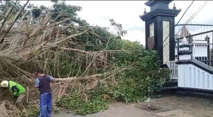 BATANG, smpantura – Sebuah pohon beringin berukuran besar yang berlokasi di Jalan Veteran, tepatnya di depan Kantor Bupati Batang, tumbang pada Jumat sore (6/3). Insiden sekitar pukul 15.00 WIB ini dipicu oleh embusan angin kencang yang melanda kawasan tersebut, mengakibatkan satu unit mobil yang terparkir di bawahnya ringsek tertimpa dahan pohon.