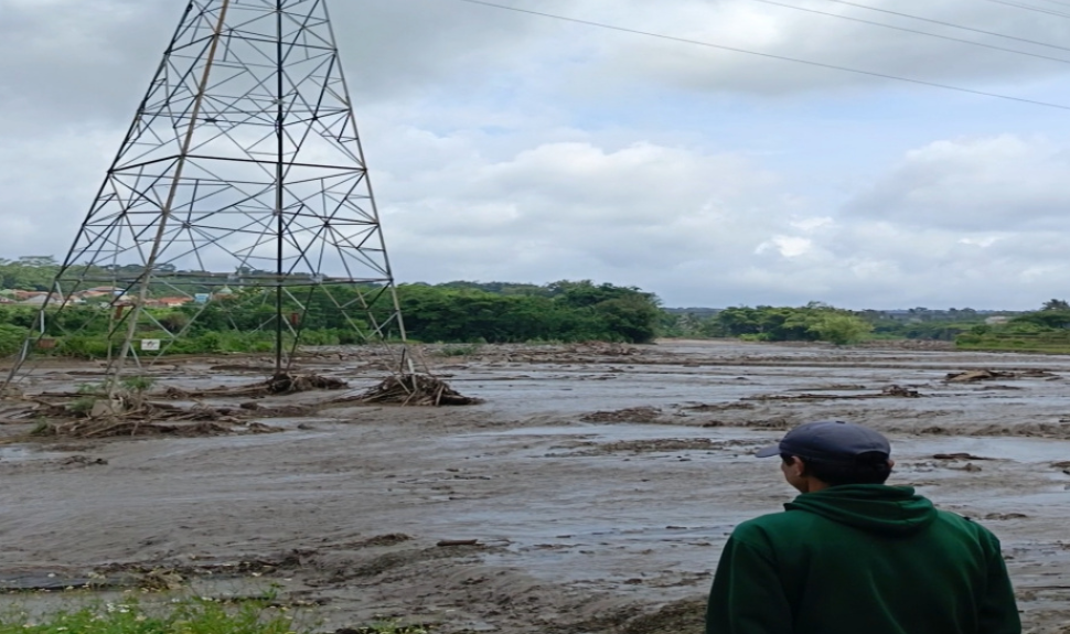 Hingga Sabtu, 24 Januari 2026, genangan air masih menutupi area tersebut. Aliran air terlihat mengelilingi kaki tower SUTET, membuat bangunan penyangga listrik itu seolah berada di tengah aliran sungai baru.