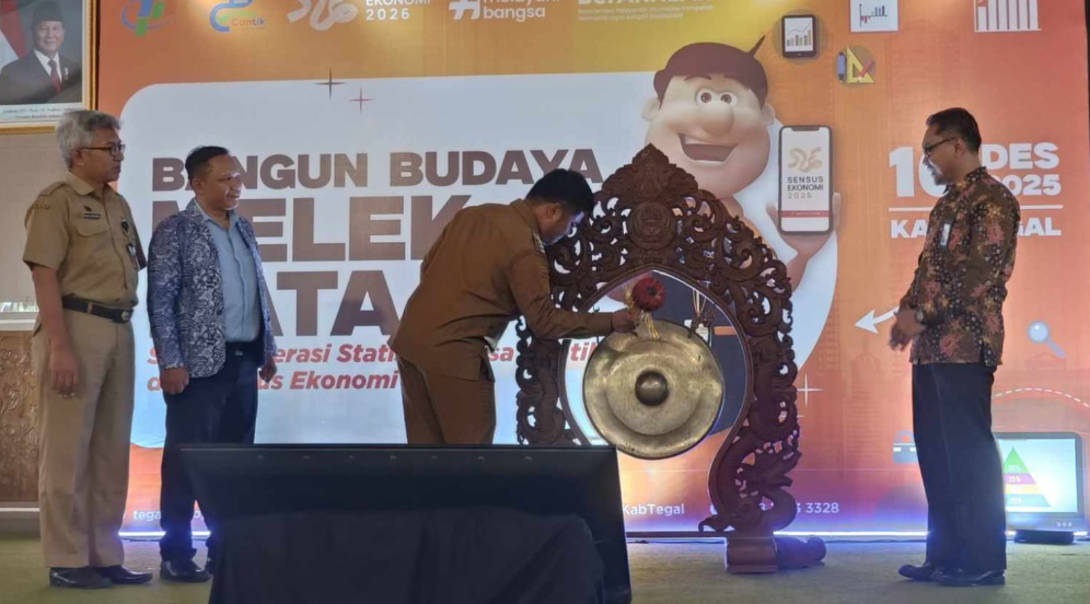 SLAWI, smpantura – Bupati Tegal, H Ischak Maulana Rohman membuka acara Sosialisasi Bangun Budaya Melek Data di Pendapa Amangkurat Pemkab Tegal, Selasa (16/12/2025). Sosialisasi Bangun Budaya Melek Data yang di selenggarakan Badan Pusat Statistik (BPS) Kabupaten Tegal itu, bertemakan Sinergi Literasi Statistik, Desa Cantik, dan Sensus Ekonomi 2026”.