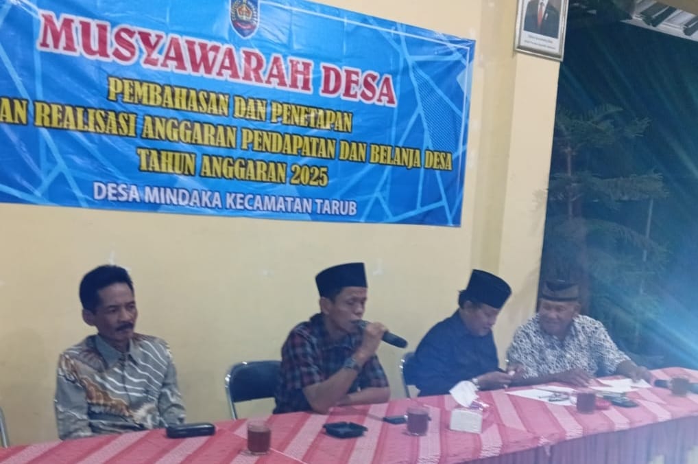 Hal itu yang di tegaskan Plt Camat Tarub, Abdul Syukur saat menghadiri acara Musyawarah Desa (Musdes) Laporan Keterangan Pertanggungjawaban (LKPJ) Desa Mindaka, Kecamatan Tarub, Kabupaten Tegal, di Kantor Desa Mindaka, Senin (26/1/2026). Abdul Syukur yang secara definisi menjabat Kabag Umum Setda Tegal itu, mengapresiasi kepada Pemerintah Desa dan seluruh jajaran BPD Desa Mindaka atas pengelolaan keuangan desa yang telah di laksanakan dengan baik selama satu tahun anggaran. Desa Mindakan kali pertama dari 20 desa di Kecamatan Tarub yang menggelar Musdes LKPJ tahun 2025. Di harapkan, desa lainnya di Kecamatan Tarub juga secepatnya melaksanakan Musdes LKPJ.