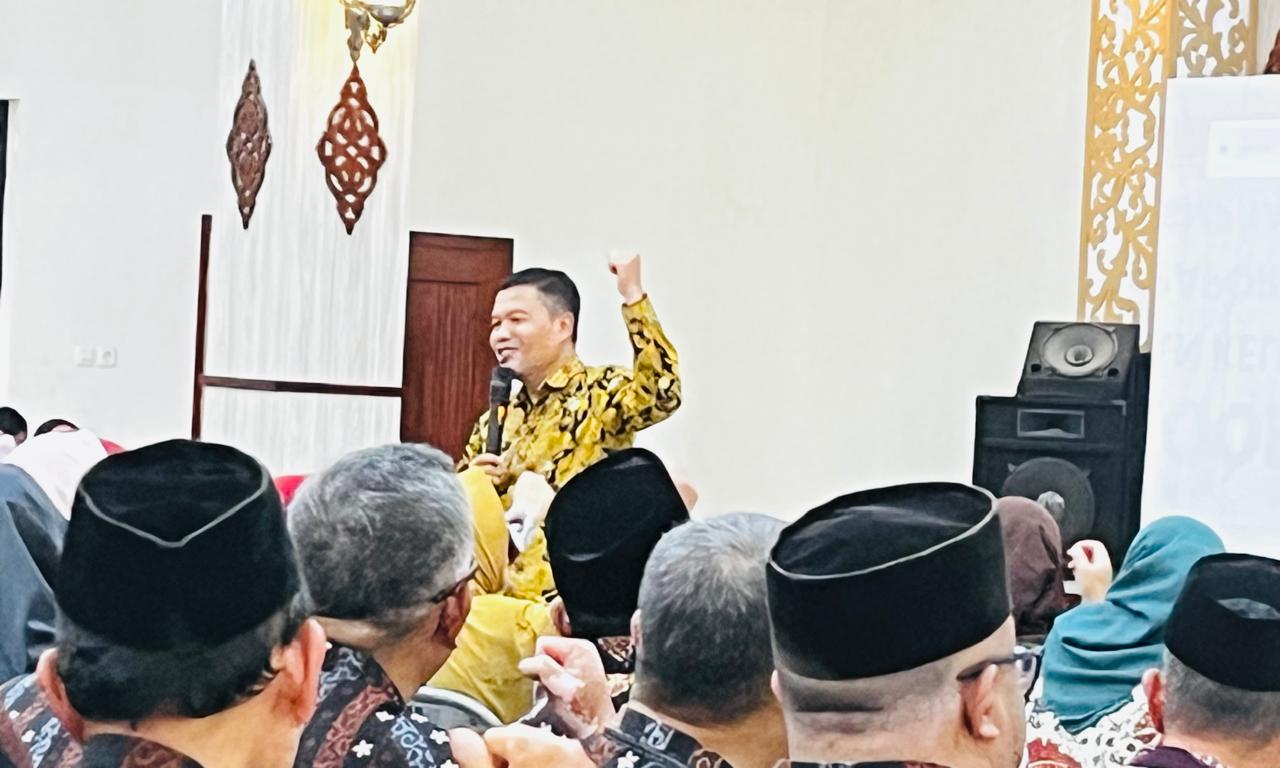 SOSIALISASI BOS : Plt Kepala Dikbud Kabupaten Tegal, Winarto SE memberikan sosialisasi Permendikdasmen Nomor 8 Tahun 2026 tentang Petunjuk Teknis Pengelolaan Dana Bantuan Operasiobal Satuan Pendidikan (BOSP) di Gedung Rakyat Slawi, Kamis (26/2/2026).