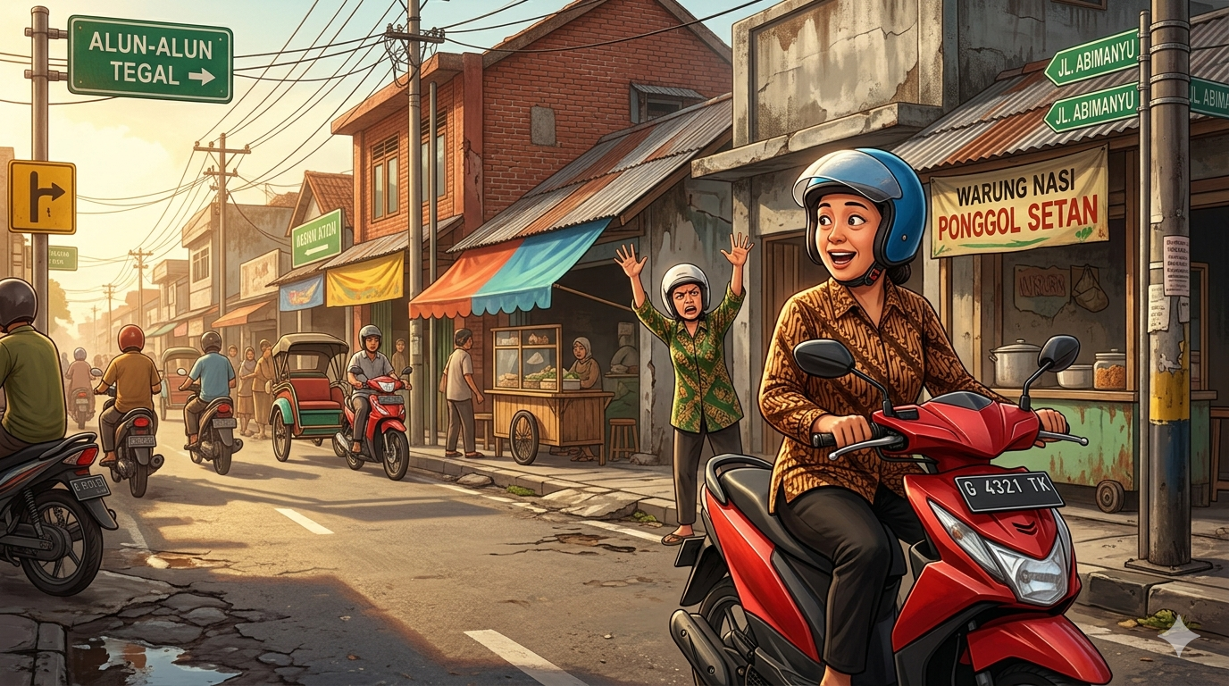 smpantura – IKHA karo Ipah kye sadulur perek, umahe tetangganan, tur ndilalah wong loro nyambet gawene sekantor. Dadi mangkat lan balik saka kantor sering bareng, boncengan numpak motor. Angger boncengan motor, Ikha sing mbonceng, Ipah sing nyetir, merga Ikha kye ora bisa nyetir motor, tapineng bisa nyetir mobil. Wong loro kye angger boncengan numpak motor, mubeng-mubeng ning Kota Tegal seringe ngrometi apa bae sing dideleng sadalan-dalan.