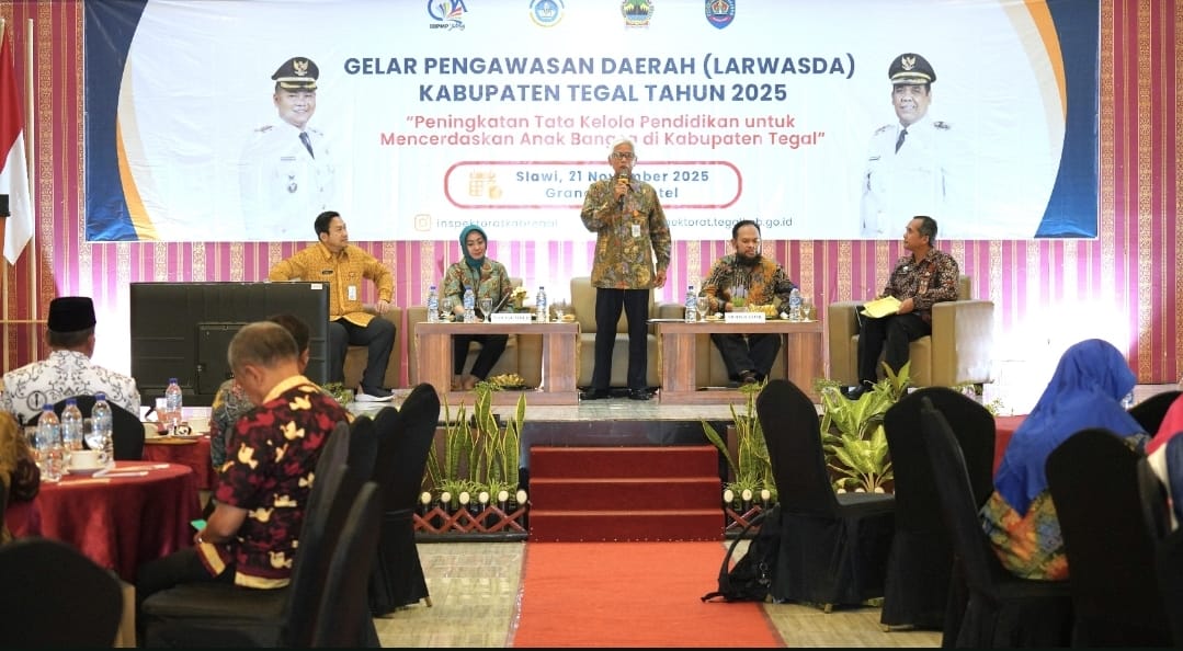 Temuan-temuan Inspektorat disampaikan Saidno pada Gelar Pengawasan Daerah (Larwasda) 2025 di Hotel Grand Dian Slawi, Jumat , 21 November 2025 lalu.