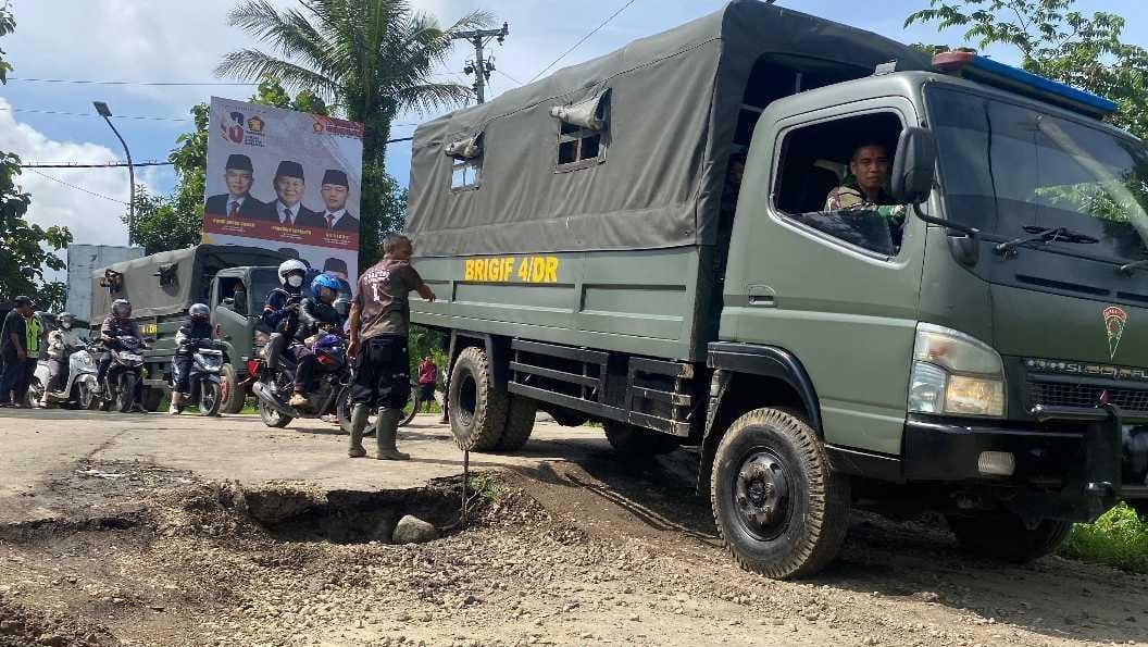 Di lokasi warga di bantu personel TNI-Polri mengatur lalu lintas agar tetap aman dan bisa di lewati. Banyak kendaraan baik sepeda motor ataupun mobil yang kesulitan saat hendak melewati jalan ambles. Namun, petugas dengan sigap ikut membantu kendaraan yang tidak kuat nanjak.