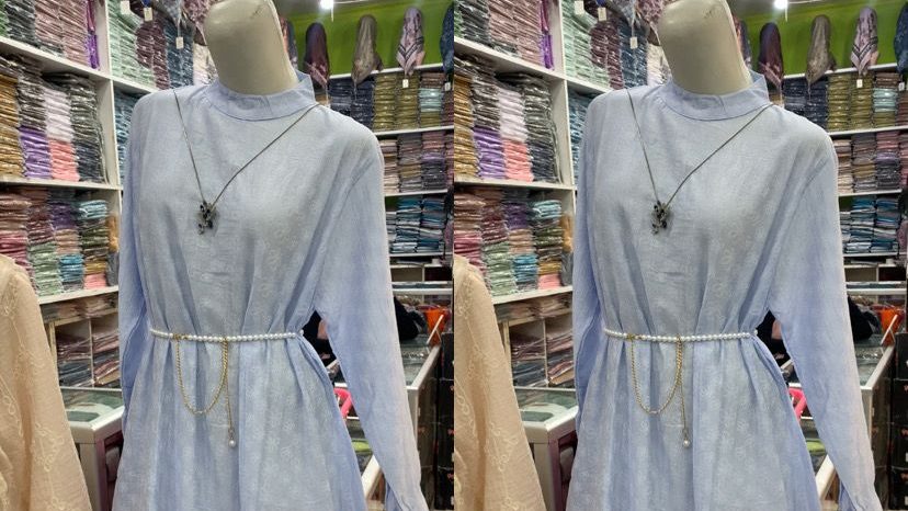 Salah satu penjual mengungkapkan, model gamis yang tengah viral menjadi produk paling banyak di cari. Ia bahkan langsung menunjukkan salah satu koleksi andalannya kepada wartawan.