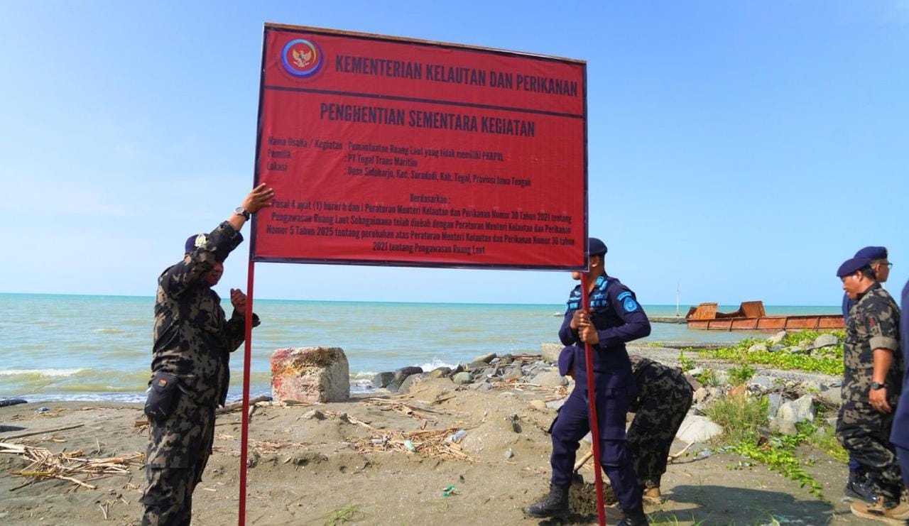 Salah satunya ditunjukkan Kementerian Kelautan dan Perikanan atau KKP dengan menghentikan sementara aktivitas enam pelaku usaha tanpa izin di kawasan Pantura Kota Tegal, Jawa Tengah.