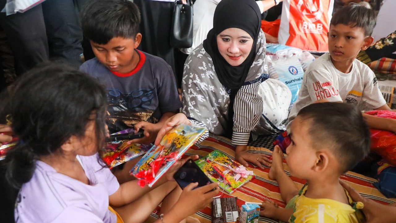 Ning Nawal berharap bantuan susu dapat membantu memenuhi kebutuhan gizi anak-anak selama berada di pengungsian, sementara buku bacaan diharapkan mampu menjadi hiburan sekaligus sarana edukasi di tengah situasi darurat.