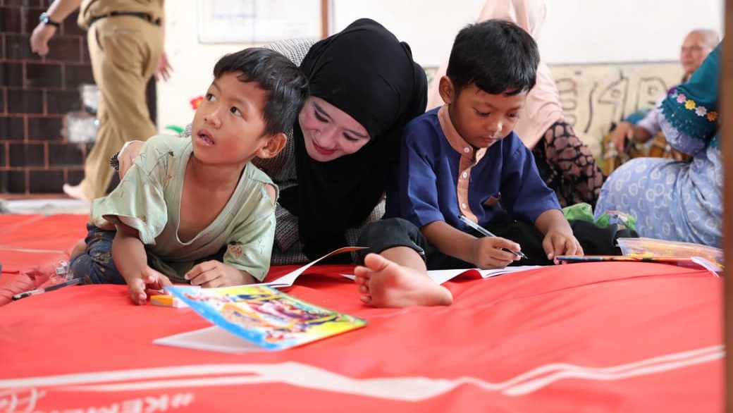 Dalam suasana penuh kehangatan dan keceriaan, anak-anak di ajak mengikuti berbagai aktivitas edukatif dan rekreatif, agar tetap merasa aman, bahagia, dan terhibur, di tengah situasi sulit akibat banjir.