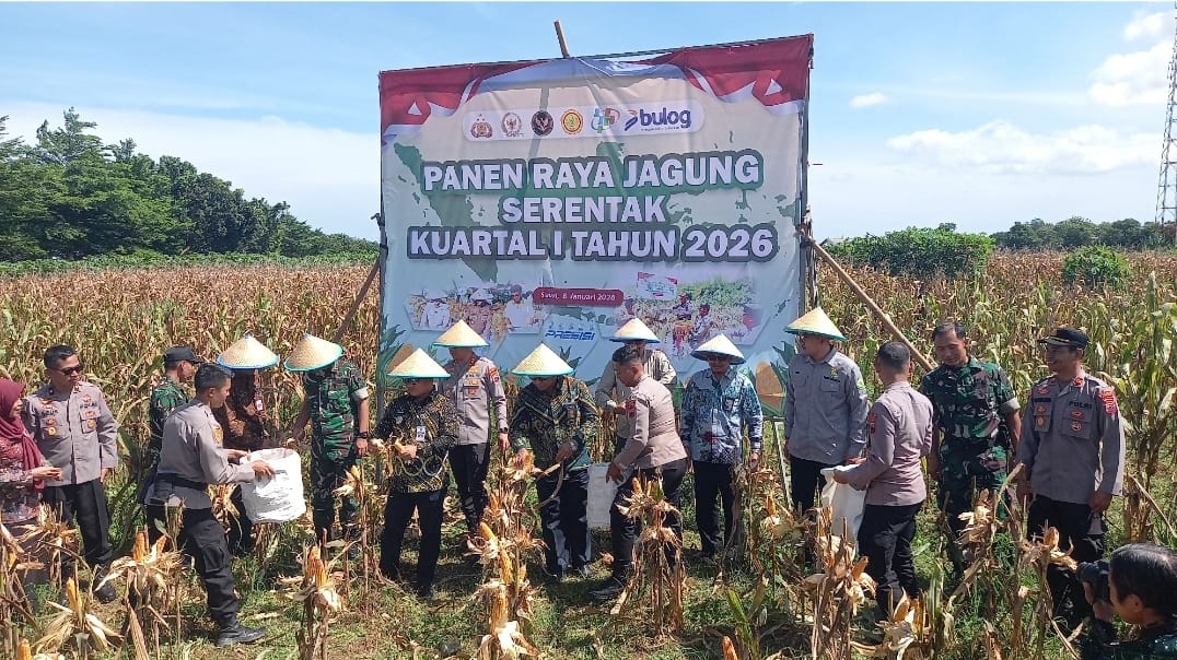 SLAWI, smpantura – Polres Tegal menggelar panen raya jagung serentak kuartal I tahun 2026 di Lahan Baku Sawah Jalan Lingkar Kota Slawi, Kecamatan Pangkah, Kabupaten Tegal, Kamis (8/1/2026). Kegiatan ini merupakan wujud nyata komitmen Polri dalam mendukung program ketahanan pangan nasional.