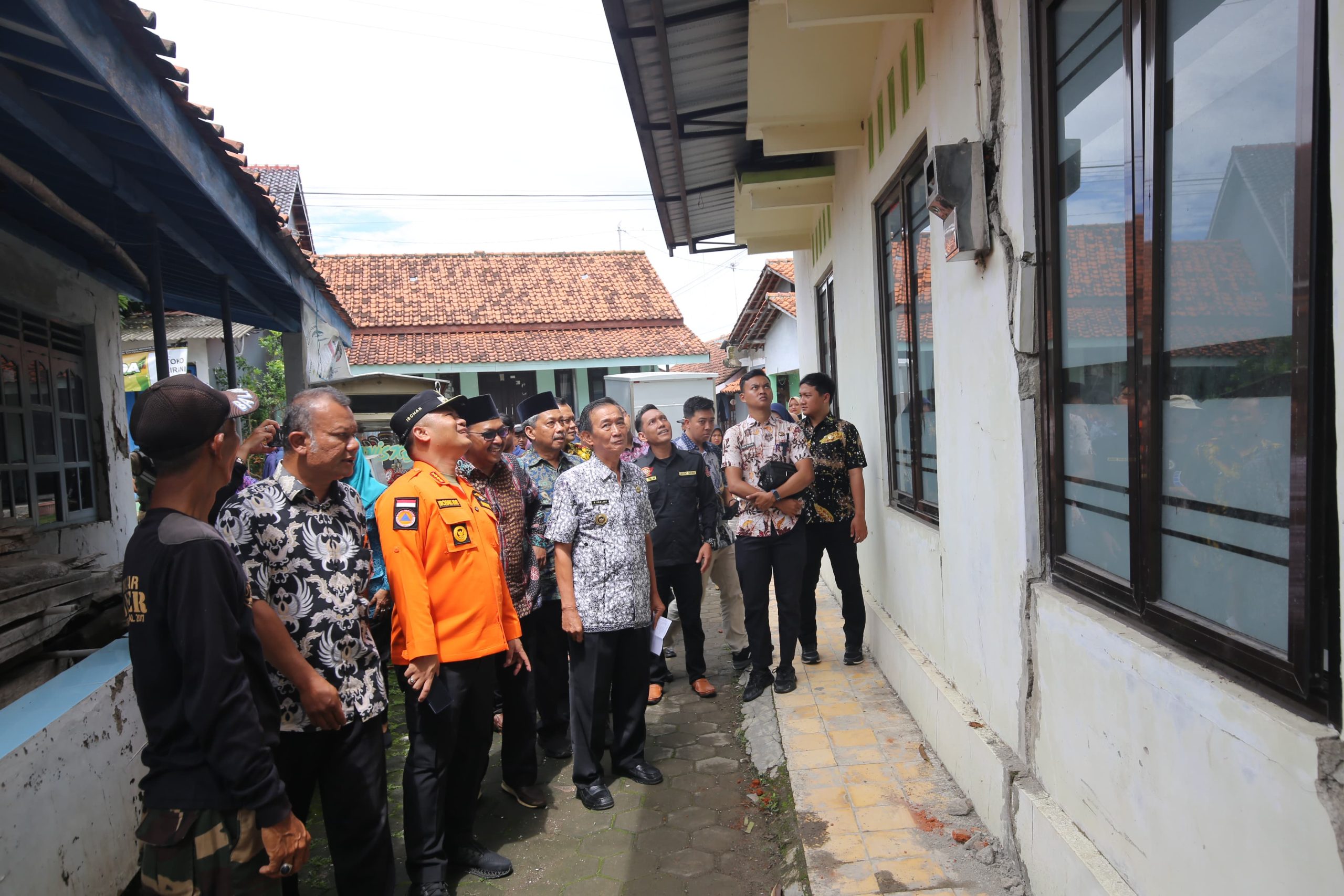 Bupati berkeliling mengecek rumah warga yang dinding dan lantainya mengalami retak termasuk ke Masjid Baitul Mutaqin yang sebagian dindingnya mengalami retak.