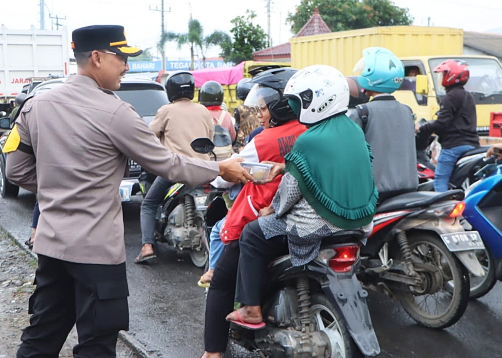 Upaya mengimbau pemudik atau pengguna jalan lain dari berbagai daerah dan warga Kota Tegal, tak hanya dilakukan dengan menyebarkan brosur maupun leaflet berisi imbauan. Tapi Polres Tegal Kota memiliki cara unik. Selain menyampaikan imbauan, juga sekaligus memberikan edukasi dan bersedekah.