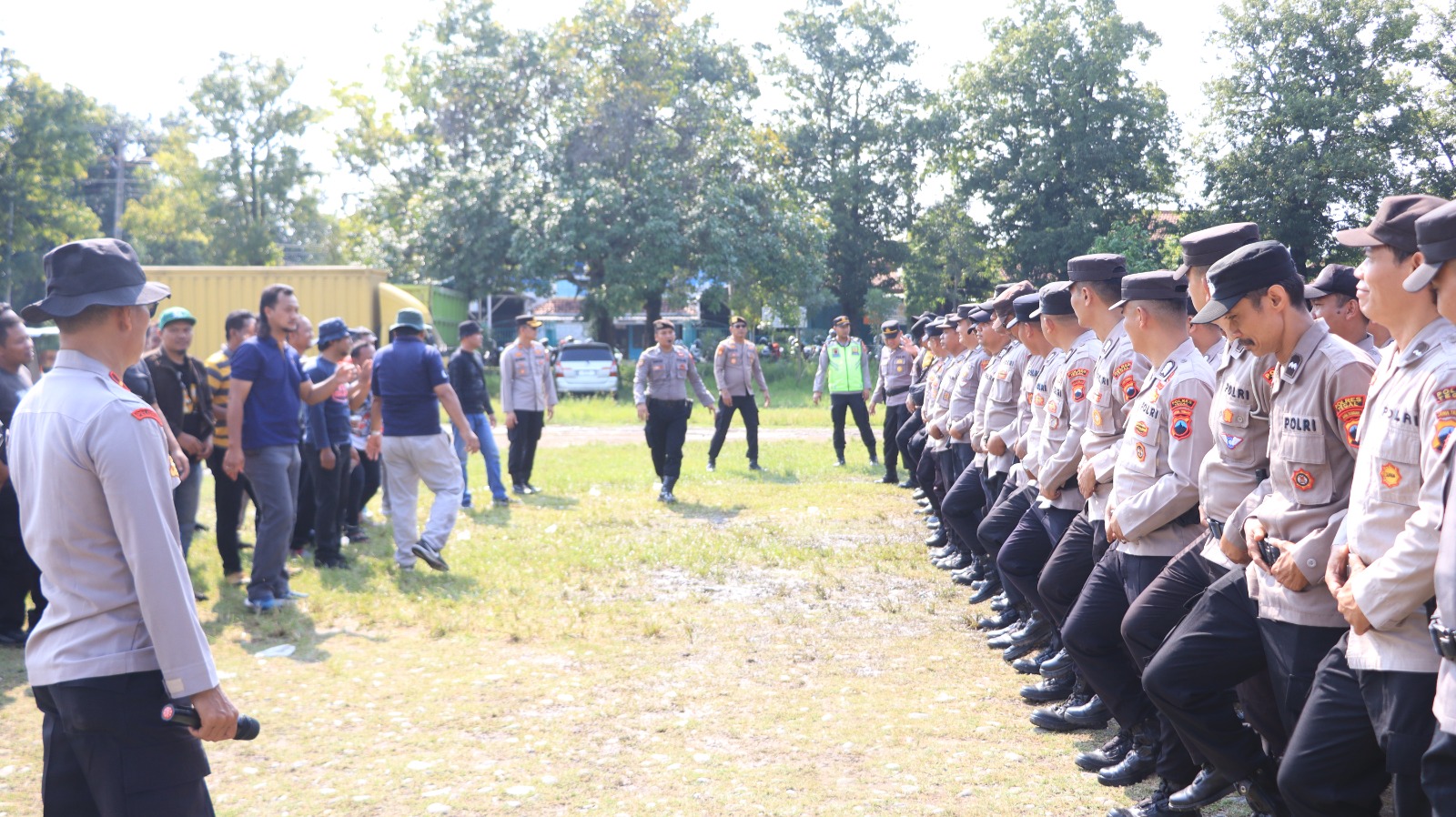 Kegiatan yang berlangsung sejak pagi tersebut melibatkan personel gabungan dari berbagai satuan fungsi di lingkungan Polres Tegal, mulai dari Satsamapta, Satlantas, fungsi operasional lainnya, hingga anggota Polsek jajaran sebagai unsur kewilayahan yang berperan penting dalam penanganan situasi di tingkat kecamatan.