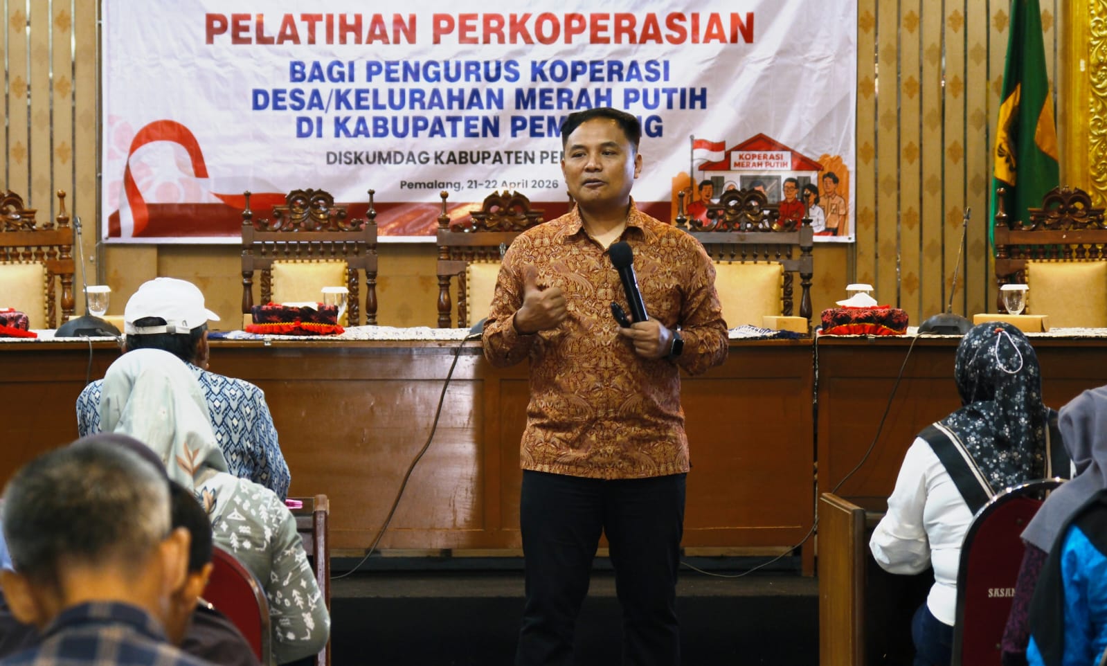 “Jumlah peserta 91 orang perwakilan pengurus KDKMP dari Kecamatan Bantarbolang, Randudongkal, Warungpring, Moga, Pulosari, Belik, dan Watukumpul. Sedangkan pelatihan tahap kedua dilaksanakan pada 21 – 22 April 2026 di Gedung Sasana Bhakti Praja dengan jumlah peserta 132 orang, perwakilan pengurus KDKMP Kecamatan Pemalang, Taman, Petarukan, Comal, Ampelgading, Ulujami dan Bodeh,” ujar Kepala Diskumdag Kabupaten Pemalang Rosi Kartika Dewi, Selasa (21/4).