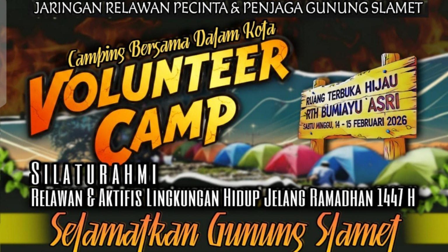 BREBES, smpantura – Relawan dan aktivis lingkungan akan berkumpul di Ruang Terbuka Hijau (RTH) Bumiayu Asri pada Sabtu-Minggu, 14 – 15 Februari 2026, untuk menggelar Volunteer Camp.