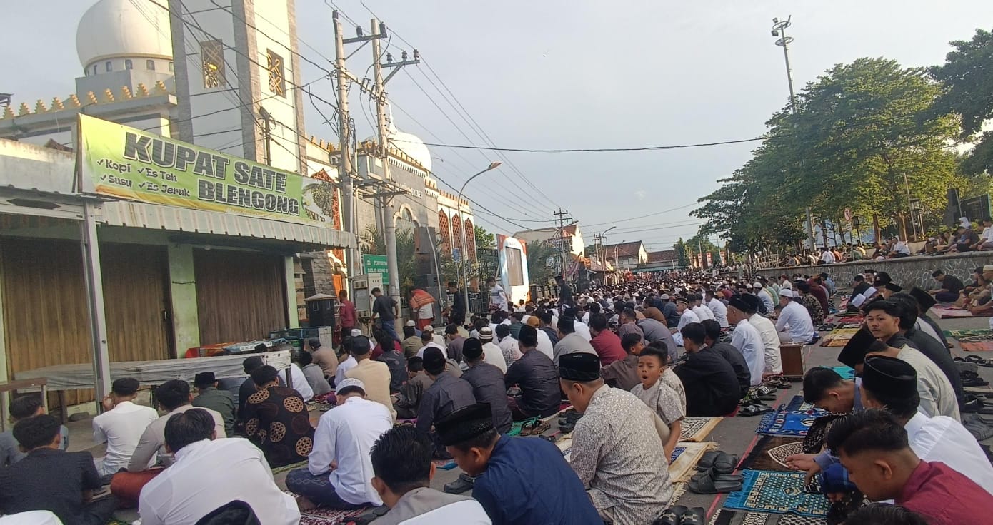 BREBES, smpantura – Salat Idul Fitri (Eid) di Masjid Agung Brebes, Sabtu (21/3/2026), dihadiri ribuan umat muslim di Kota Brebes. Bahkan, para jamaah meluber hingga halama masjid dan Alun-alun Kota Brebes.
